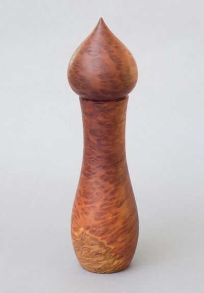 Despite the simple shape, I find these are more challenging to make. First, the central 'axes' of the top and bottom of the mill need to be nearly identical or they don't match up right. Second, because the design is so spare, there is no place to hide mistakes. And yes, woodturners make mistakes and they get very good in concealing them. So with this design you must be meticulous and go slow.